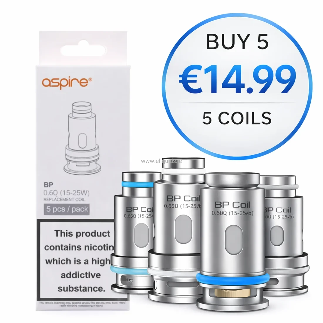 Aspire BP replacement coils are designed for Aspire BP platform devices including pod-mod and AIO systems. All variants use mesh heating structure and are intended for regulated wattage operation.